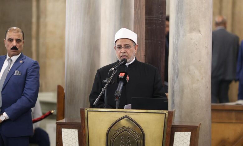 وأوضح فضيلته خلال كلمته بالاحتفالية التي أقيمت بالجامع الأزهر عقب صلاة الظهر أن الأزهر ظل عبر تاريخه موطنًا للغُرِّ الميامين من رجاله الذين ترى فيهم الشافعي ومالكًا وأبا حنيفة وابن حنبل حضرًا في حلقاته وأروقته، مستشهدًا بقول أمير الشعراء أحمد شوقي عن الأزهر: «وَمَشى إِلى الحَلَقاتِ فَاِنفَجَرَت لَهُ * حَلقاً كَهالاتِ السَماءِ مُنَوِّرا.. حَتّى ظَنَنّا الشافِعِيَّ وَمالِكاً * وَأَبا حَنيفَةِ وَاِبنَ حَنبَلِ حُضَّرا.. إِنَّ الَّذي جَعَلَ العَتيقَ مَثابَةً * جَعَلَ الكِنانِيَّ المُبارَكَ كَوثَرا».