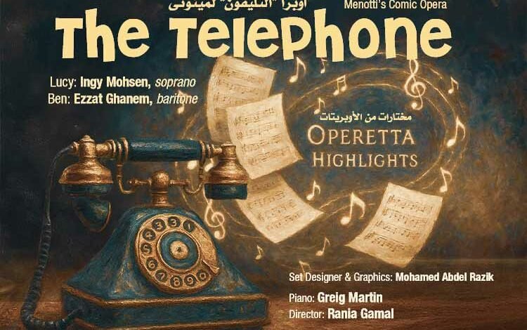تنظم دار الأوبرا المصرية برئاسة الدكتور علاء عبد السلام حفلين لفرقة أوبرا القاهرة بمصاحبة عازف البيانو جريج مارتن ومن إخراج رانيا جمال وتصميم الديكور والجرافيك محمد عبد الرازق يضمان الأوبرا الكوميدية القصيرة التليفون للموسيقار الإيطالى العالمى مينوتى يؤديها السوبرانو إنجى محسن والباريتون عزت غانم إلى جانب مختارات من الأوبريتات العالمية وذلك فى الثامنة مساء يومى الخميس والجمعة 30، 31 اكتوبر على المسرح الصغير .
