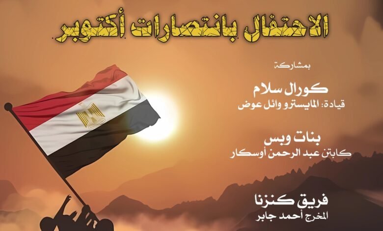 تواصل دار الأوبرا المصرية برئاسة الدكتور علاء عبد السلام إحتفالاتها بذكرى إنتصارات أكتوبر، حيث تقيم ضمن نشاطها الثقافى والفكرى بإشراف رشا الفقى وبالتعاون مع المركز القومى لثقافة الطفل التابع للمجلس الأعلى للثقافة أمسية فى السابعة مساء الأربعاء 29 أكتوبر بمعهد الموسيقى العربية تتضمن فقرات فنية متنوعة تجسد مشاعر الفخر والعزة بالوطن ويشارك خلالها كل من كورال سلام بقيادة المايسترو وائل عوض، فريق بنات وبس بقيادة الكابتن عبد الرحمن أوسكار، فريق كنزنا بقيادة المخرج أحمد جابر.