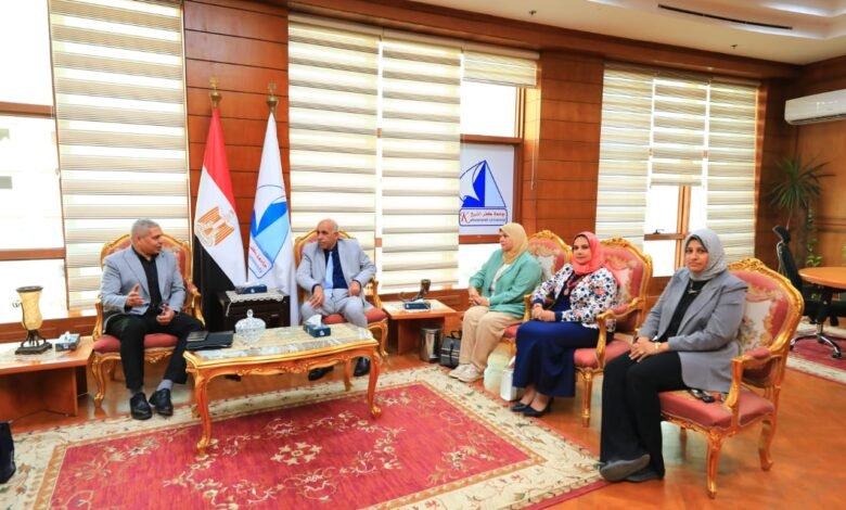بحضور الدكتور صباح أبو الفتوح عميد كلية المريض بالجامعة، حيث ناقش الفريق مع إدارة الكلية سبل تطوير نظم الاختبارات ورفع كفاءة الأداء الأكاديمي بما يعزز جودة العملية التعليمية.