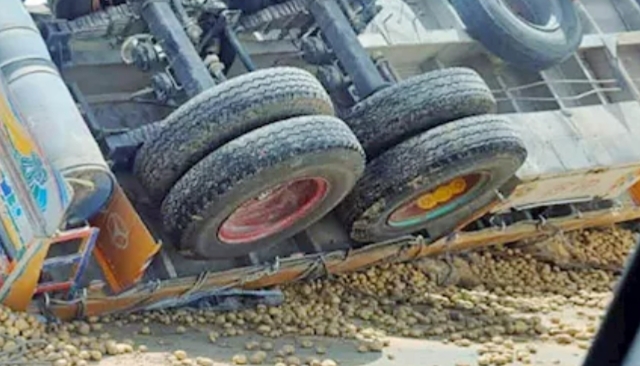 بحسب البلاغ، تناثرت حمولة البطاطس على الأسفلت، ما أدى إلى غلق جزء من الطريق، ودفع الجهات المختصة إلى التحرك الفوري لاحتواء آثار الحادث.
