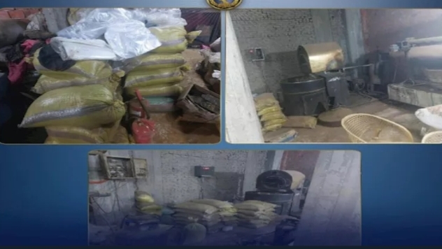 أفادت الوزارة في بيان رسمي بأن الأجهزة الأمنية عثرت بالمصنع على أكثر من 10 أطنان من”بسلة مجففة ونشا” معبأة داخل شكائر، 75 كيلو جرام من “مخلفات طحن البن”، وأكثر من 3 أطنان بن تم تصنيعه من البسلة المجففة والنشا ومخلفات القهوة مجهولة المصدر، 7 ماكينات تشمل طحن، تحميص، غربلة، بالإضافة إلى ميزان وخط إنتاج تمهيدًا لطرحها بالأسواق بقصد الغش والتدليس على جمهور المستهلكين لتحقيق أرباح غير مشروعة.