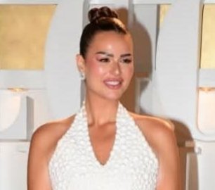 أما المكياج فجاء قويًا ومتناغمًا مع الفستان الأبيض، إذ اختارت مكياجًا جلَام ركّز على العيون المسحوبة بالآيلاينر والرموش الكثيفة، مع ظلال ترابية ناعمة.